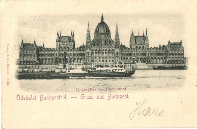 1898 Budapest V. Országház, Parlament, gőzhajó (EK)