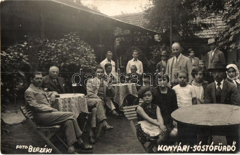 1930 Konyári-Sóstófürdő, vendéglő kerthelyisége, családi csoportkép pi...