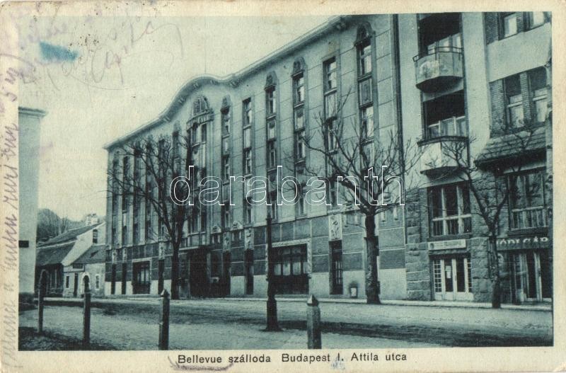 Budapest I. Bellevue szálloda, Attila út. Kapható özv. Fekete Lajosné ...