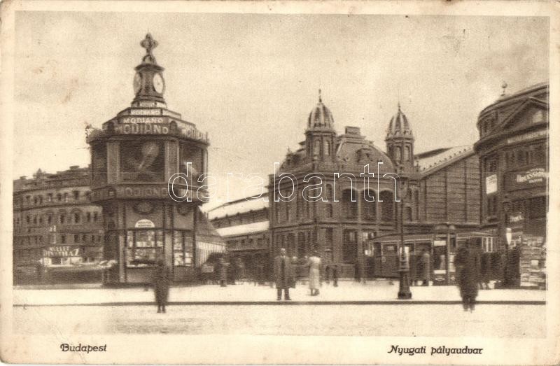 Budapest VI. Nyugati pályaudvar, vasútállomás, villamos, Modiano (EB)