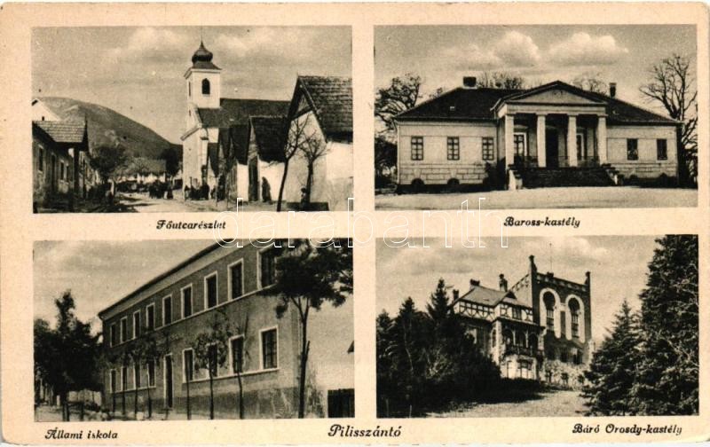 Pilisszántó, Fő utca, Baross kastély, Állami iskola, Báró Orosdy kastély
