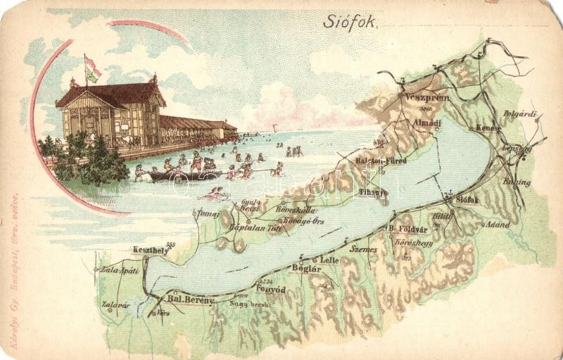 Siófok, Balaton térkép, Károlyi Gy. kiadása, litho (EM)