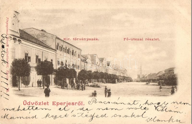 Eperjes, Presov; Fő utca, Kir. Törvényszék. Divald kiadása / main street, court (EK)