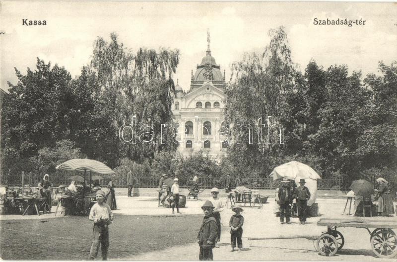 Kassa, Kosice; Szabadság tér, piac / square, market (gyűrődés / crease...