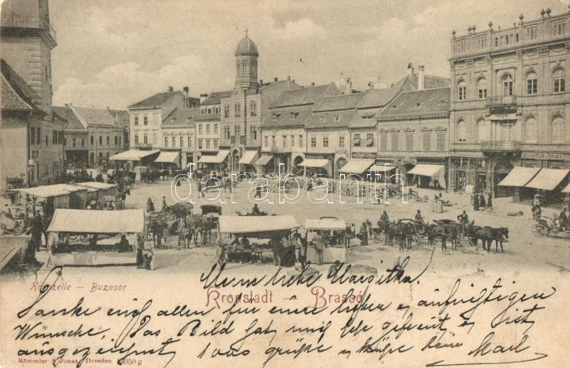 Brassó, Kronstadt, Brasov; Kornzeile / Búzasor, piac, Servatius és Gra...