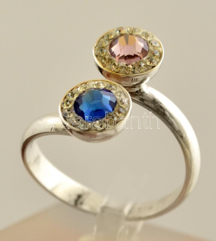 Ezüst(Ag) gyűrű, színes, szintetikus kövekkel, jelzett, méret: 55, bruttó: 3,5 g