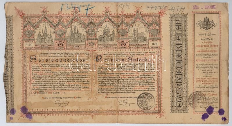 Budapest 1886. "Egyházi Műemlék Alap" sorsjegykölcsön 5Ft-ról a lipótv... https://www.darabanth.com/en/304-Online-auction/304.0/Numismatics/Shares-and-Tickets~500005/Budapest-1886-Egyhazi-Muemlek-Alap-sorsjegykolcson-5Ft-rol-a-lipotvarosi-bazilika-felepC3~II1635946