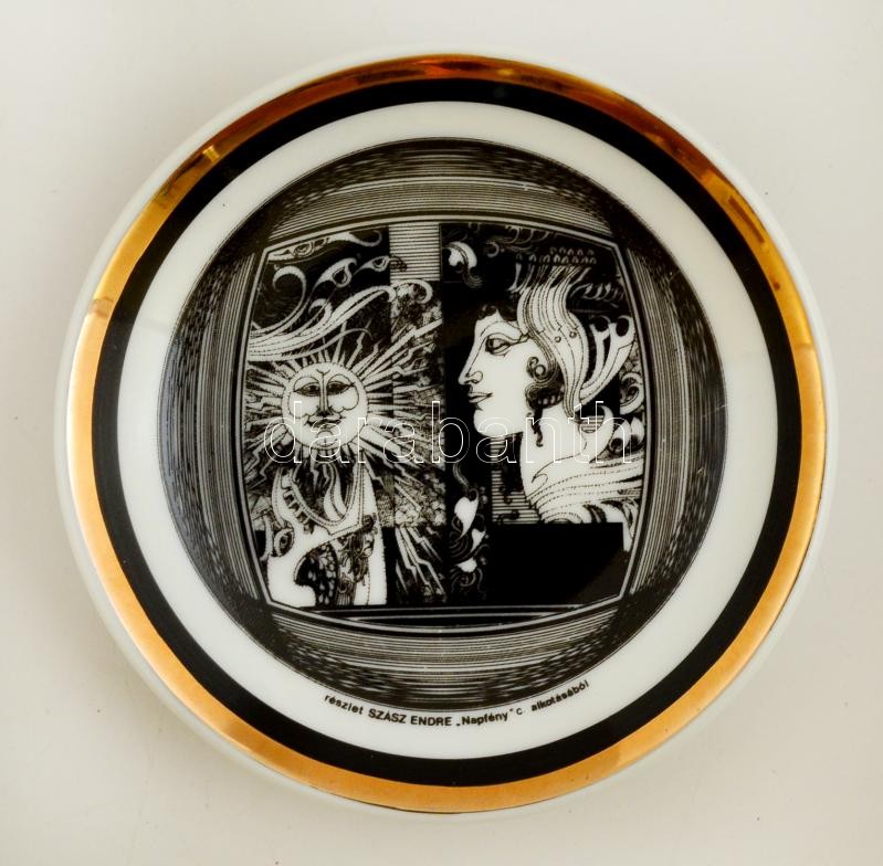 Hollóházi Szász Endre által tervezett kis tálka, matricás, jelzett, hibátlan, d:7,5 cm