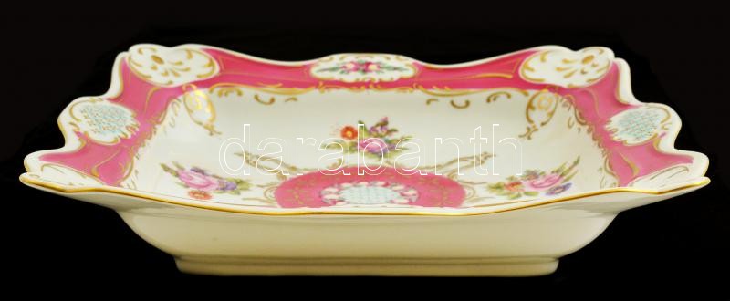 Hollóházi virág mintás tál, kézzel festett, jelzett, hibátlan, 30×30 c...