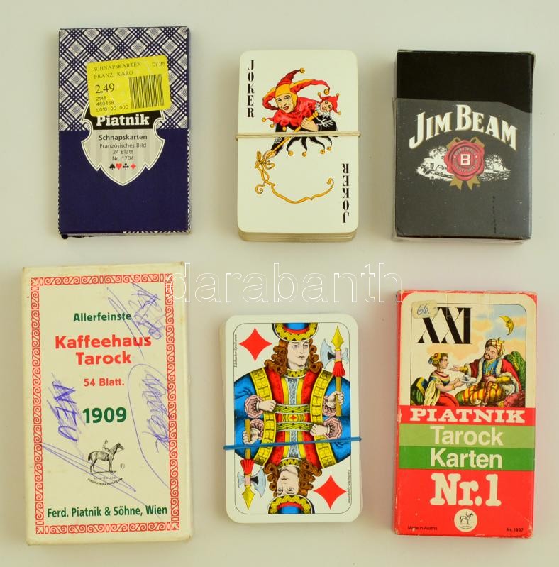 Vegyes kártya tétel, összesen 6 csomag, többségében Piatnik, köztük ta...