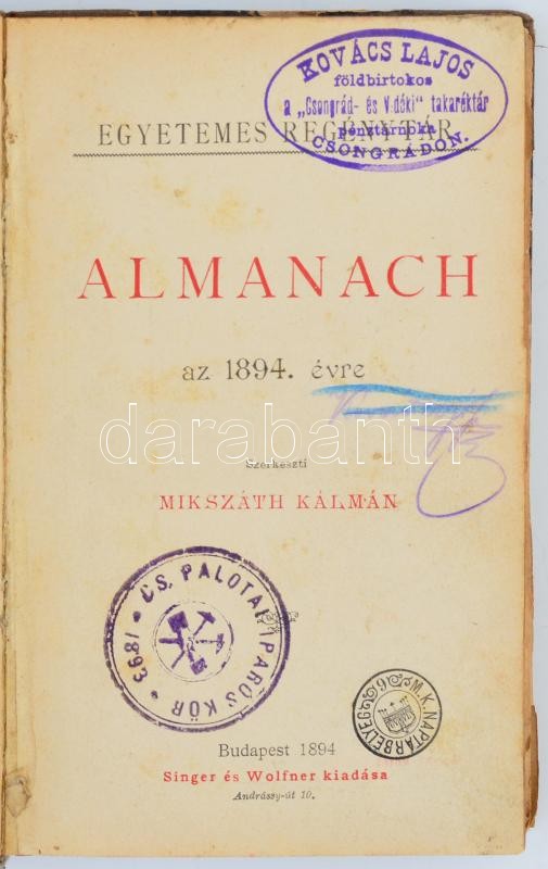 https://www.darabanth.com/en/305-Online-auction/305.0/Books/Books-Other-rarities~400016/Almanach-az-1894-evre-Szerk-Mikszath-Kalman-Bp-1894-Singer-es-Wolfner-Serult-gerincC5~II1649411