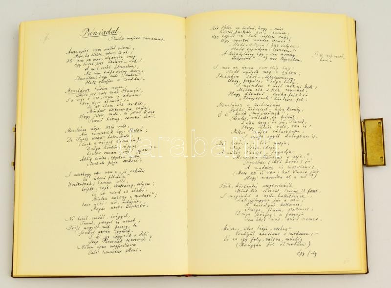 Arany János Kapcsos Könyve. Bp., 1982, Magyar Helikon-Akadémiai Kiadó. Harmadik kiadás. Hasonmás kiadás. Kiadói egészműbőr kötés, réz kapoccsal.