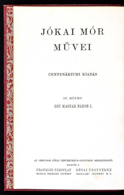Jókai Mór Művei. Centenáriumi kiadás. 1-50 kötet. Bp. (Franklin-Társul... https://www.darabanth.com/en/305-Online-auction/305.0/Books/Books-Other-rarities~400016/Jokai-Mor-Muvei-Centenariumi-kiadas-1-50-kotet-Bp-Franklin-Tarsulat-Revai-1925-1928-~II1647398