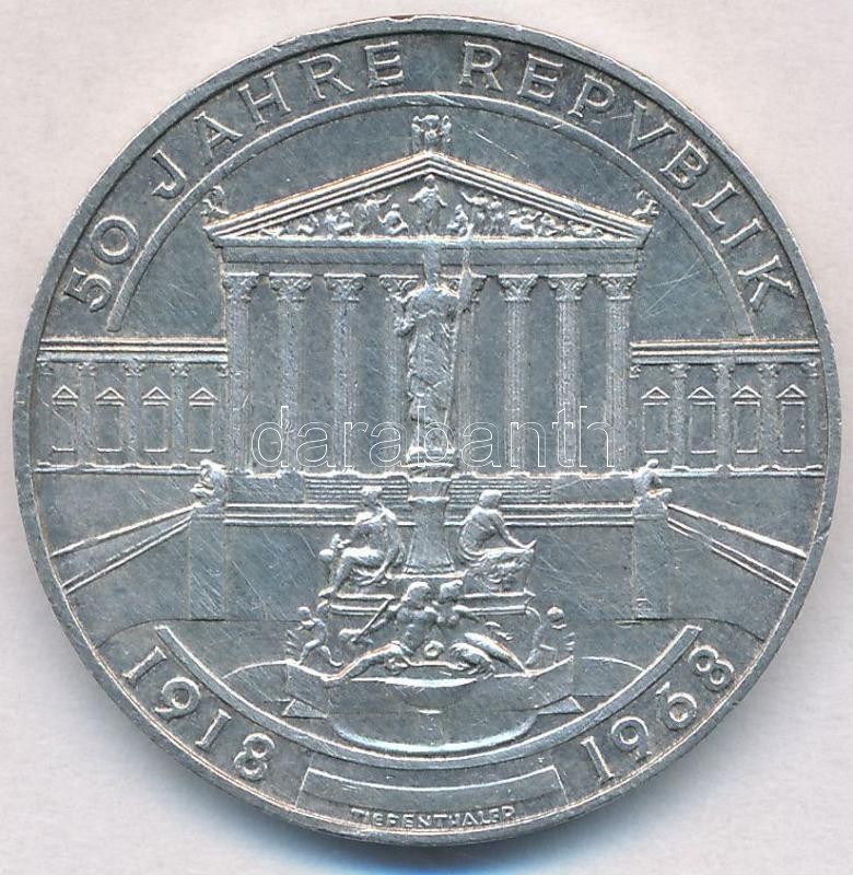 https://www.darabanth.com/en/305-Online-auction/305.0/Numismatics/Worldwide-silver-and-metal-coins~13/Ausztria-1968-50Sch-Ag-50-eves-a-Koztarsasag-T1-2--Austria-1968-50-Schilling-Ag-50th-Anni~II1644541