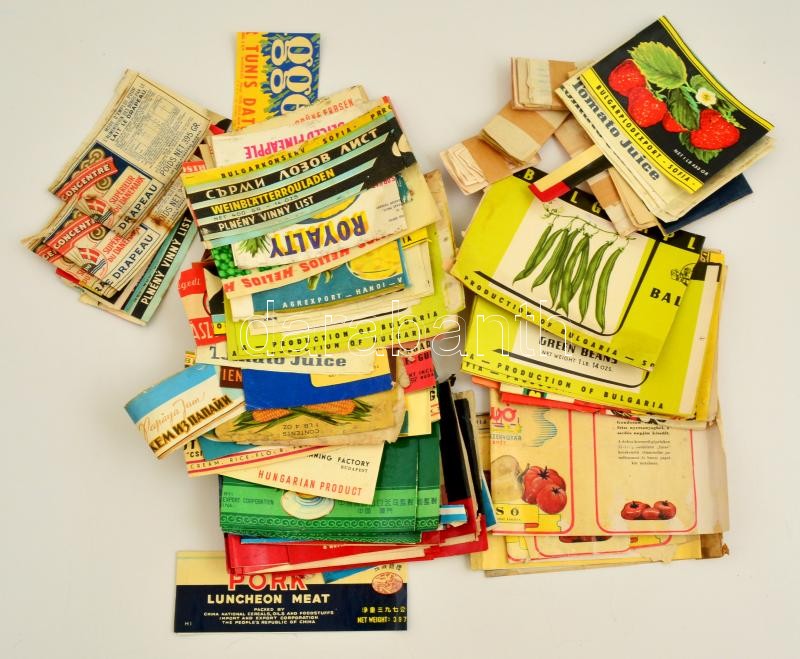Kb. 300 db régi és modern konzervcímke, magyar és külföldi vegyesen