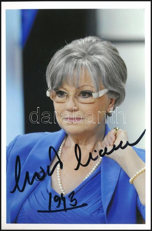 Moór Marianna (1943-) színésznő aláírása az őt ábrázoló fotón, 10x15 c...