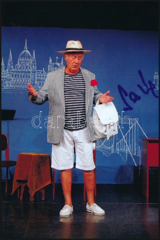 Sas József (1943-) színész, rendező, író, humorista, aláírása az őt ábrázoló fotón, 10x15 cm