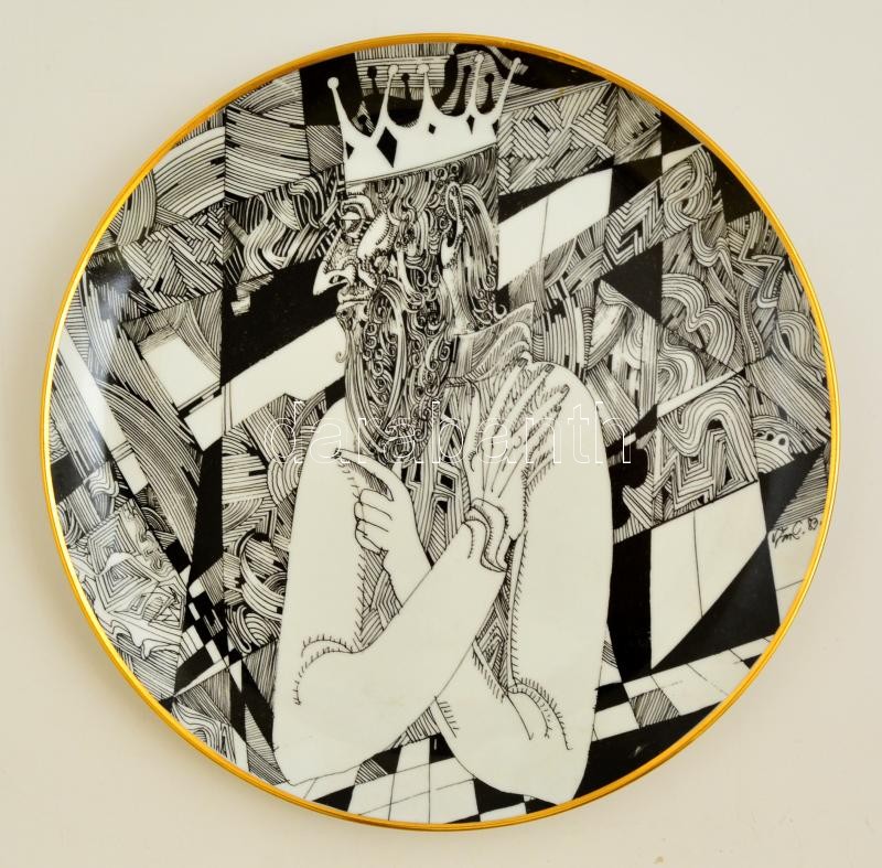 Hollóházi Szász Endre tervezte falitál, matricás, jelzett, hibátlan, d...