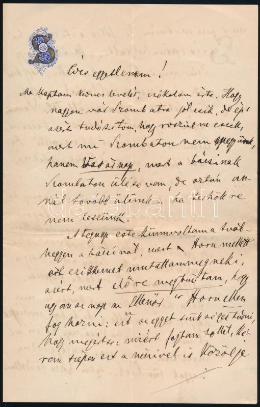 1871 Hegedűs Sándor (1847-1906) közgadász, miniszter, író saját kézzel írt szerelmes levele Jókay Jolánnak 4 beírt oldal