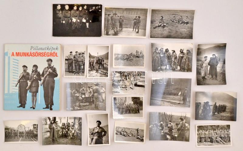 Description: Kis munkásőrség tétel: Vadász Ferenc (szerk.): Pillanatképek a munkásőrségről. h. n. 1971, Munkásőrség Országos Parancsnoksága. + 19 db korabeli fotó munkásőrökről, gyakorlat és felvonulás közben 9x6 és 9x14 cm közti méretben