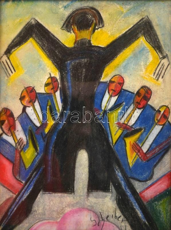 Scheiber jelzéssel: Karmester. Pasztell, papír, üvegezett keretben, 40...