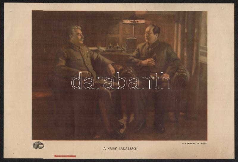 https://www.darabanth.com/en/305-Online-auction/305.0/Other-collectibles/Printed-Materials~300027/cca-1950-A-nagy-baratsag-Sztalin-es-Mao-D-Nalbandian-festmenye-alapjan-keszult-nyomtatva~II1641530