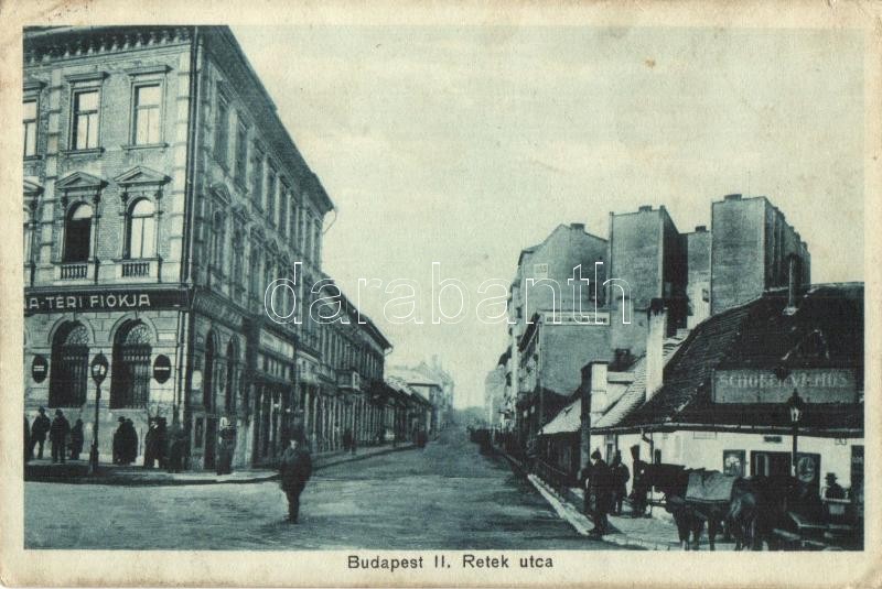 Budapest II. Retek utca, Schober Vilmos üzlete. Szirmai dohánytőzsde kiadása (ázott sarok / wet corner)
