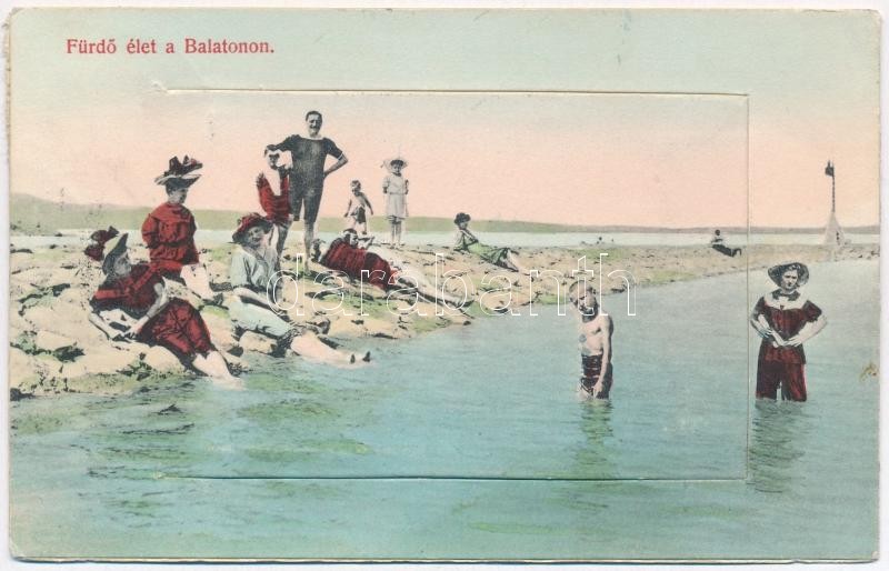Siófok, Fürdő élet a Balatonon leporellólap, fürdőzők. Weisz Lipót kia...