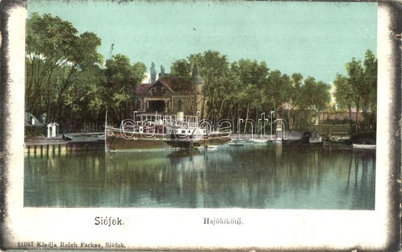 Siófok, hajókikötő, gőzös. Kiadja Reich Farkas 11087. (kis szakadás / ...