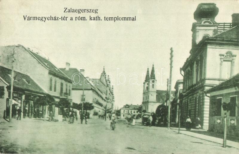 Zalaegerszeg, Vármegyeház tér, római katolikus templom, üzletek