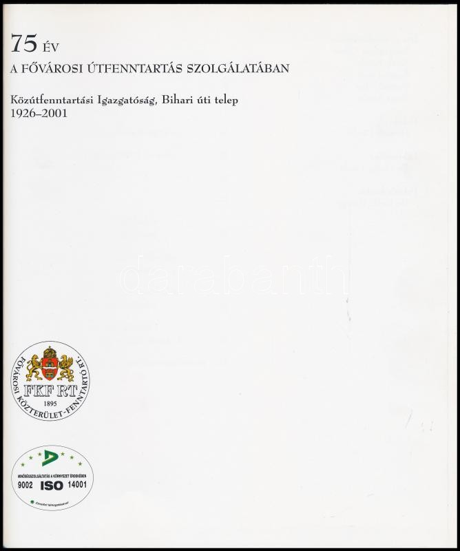 75 év a fővárosi útfentartás szolgálatában. Közútfenntartási Igazgatóság, Bihari úti telep. 1926-2001. Bp., 2001, Fővárosi Közuterület-Fenntartó Rt. Kiadói kartonált papírkötés, fekete-fehér fotókkal.