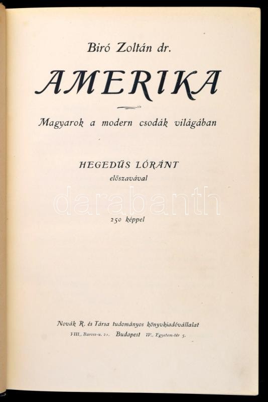Dr. Biró Zoltán: Amerika. Magyarok a modern csodák világában. Hegedüs Loránt előszavával. Bp., 1929, Novek R. és Társa. Első kiadás. Kiadói aranyozott egészvászon-kötés, kissé sérült gerinccel, fekete-fehér fotókkal illusztrálva. Jó állapotban.