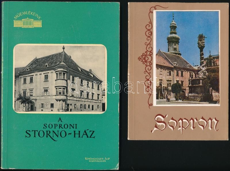 Vegyes helytörténeti tétel, 2 db: Dr. Gímes Endre: Sopron. (Győr), 1972, Győr-Sopron-Moson Megyei Idegenforgalmi Hivatal. Kiadói papírkötés. Storno Pál. A soproni Storno-ház. Bp., 1960, Képzőművészeti Alap. Kiadói papírkötés.