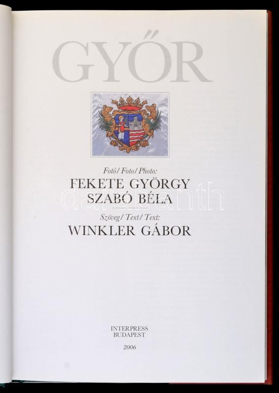 Winkler Gábor: Győr. Fekete György, Szabó Béla fotóival. Bp., 2006, Interpress. Kiadói kartonált papírkötés, kiadói papír védőborítóban, magyar, angol és német nyelven.
