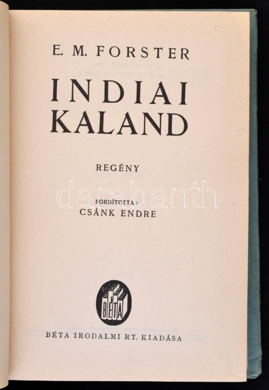 E. M. Forster: Indiai kaland. Fordította Csánk Endre. Bp. ,é.n., Béta Irodalmi Élet Rt. Kiadói kissé kopottas félvászon-kötés.
