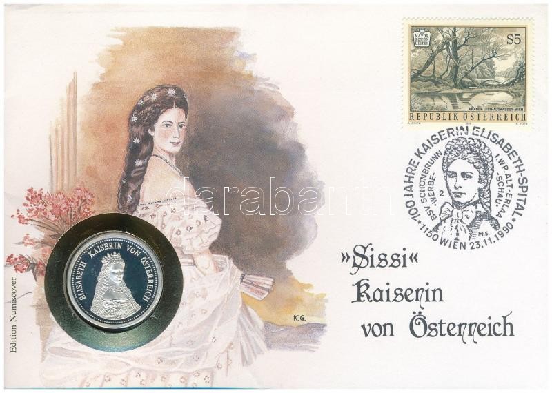 Ausztria ~1990. "Erzsébet Ausztria Császárnéja" jelzett Ag e... https://www.darabanth.com/en/306-Online-auction/306.0/Numismatics/Envelopes-with-Coins-and-Banknotes~200004/Ausztria-7E1990-Erzsebet-Ausztria-Csaszarneja-jelzett-Ag-emlekerem-0900-ermes-borite~II1651271