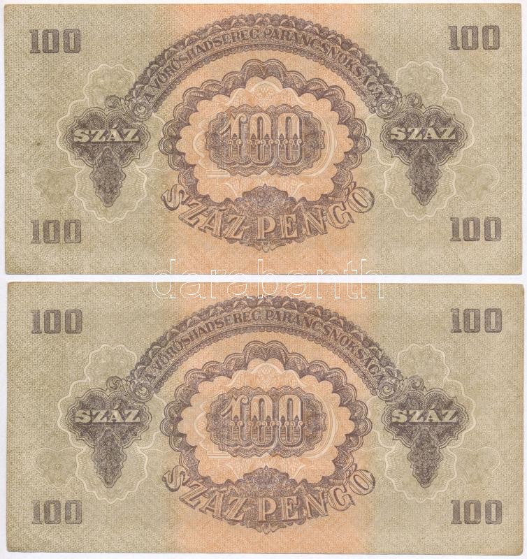 1944. 100P "A Vöröshadsereg Parancsnoksága" (2x) "AA" sorozat, sorszámkövetők T:I-