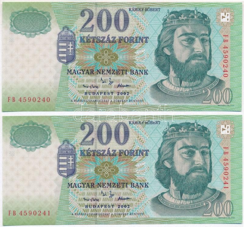 2002. 200Ft "FB" (2x) sorszámkövetők T:I