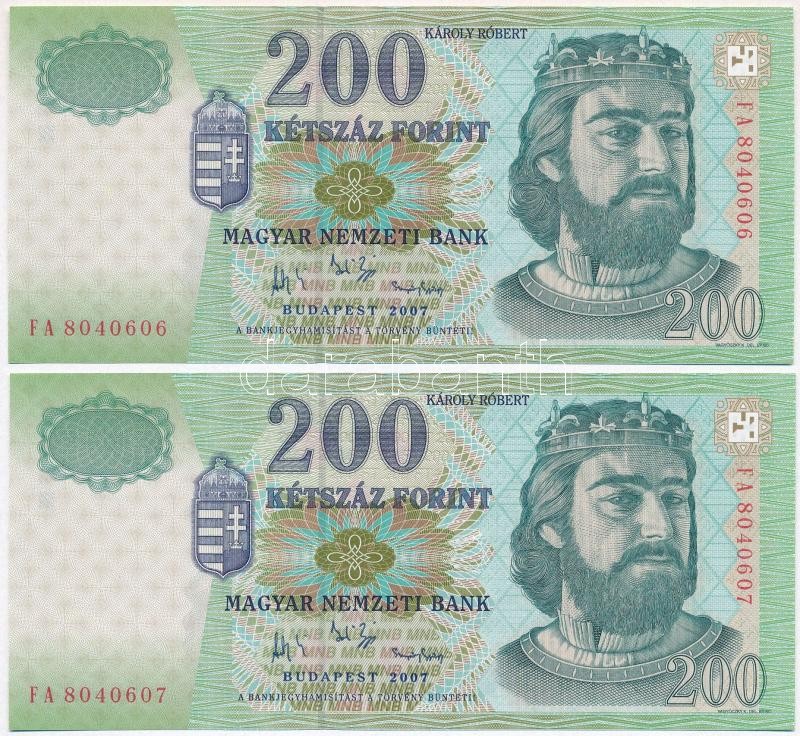 2007. 200Ft "FA" (2x) sorszámkövetők T:I