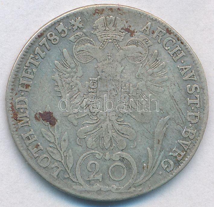 https://www.darabanth.com/en/306-Online-auction/306.0/Numismatics/Hungarian-coins-and-coins-with-Hungarian-mint-marks~200008/1785E-20kr-Ag-II-Jozsef-6-22g-T2-3--Hungary-1785E-20-Kreuzer-Ag-Joseph-II-6-22g-CVF-F--~II1640228