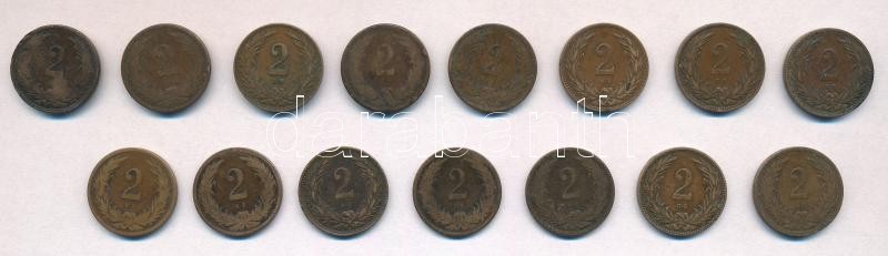 1895KB-1909KB 2f Cu (15x) ebből 9xklf évjárat T3,3-
