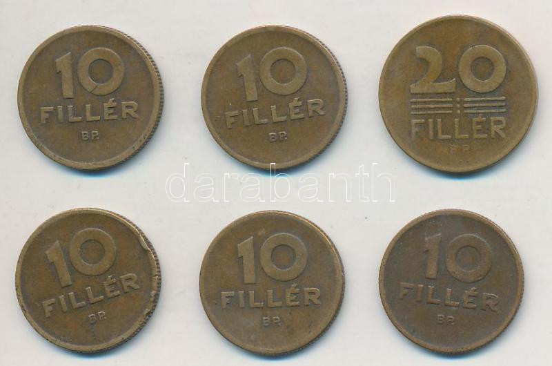 https://www.darabanth.com/en/306-Online-auction/306.0/Numismatics/Hungarian-coins-and-coins-with-Hungarian-mint-marks~200008/1946-1950-10f-tombak-6x-plus-1946-20f-tombak-T2-~II1353610
