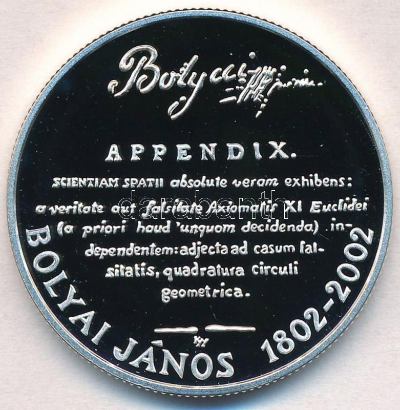 2002. 3000Ft Ag "Bolyai János" tanúsítvánnyal T:PP