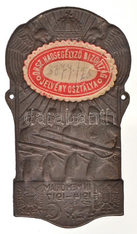 Osztrák-Magyar Monarchia 1917. "In memoriam 1914-1917" fém katonai felvarró, hátoldalán "Országos Hadsegélyző Bizottság Jelvény Osztálya" bélyeggel (65x38mm) T:2 / Austro-Hungarian Monarchy 1917. "In memoriam 1914-1917" metal military patch with "Országos Hadsegélyző Bizottság Jelvény Osztálya" stamp on reverse (65x38mm) C:XF