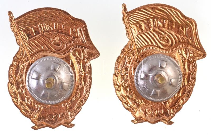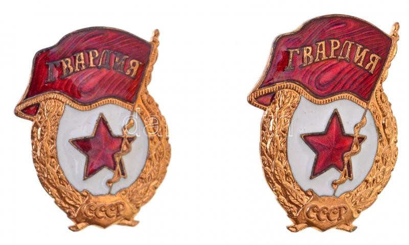 Description: Szovjetunió ~1960-1970. "Szovjet Gárda jelvény" aranyozott, zománcozott fém jelvény csavaros hátlappal (2x) (48x36mm) T:1-,2 Soviet Union ~1960-1970. "Badge of the Soviet Guards" gilt, enamelled metal badge with screw back (2x) (48x36mm) C:AU,XF