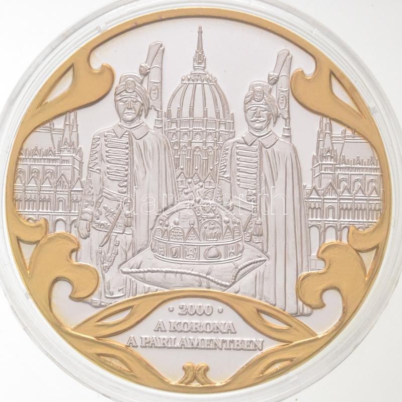 DN "A Szent Korona évezrede - A korona a Parlamentben 2000" aranyozott, ezüstözött Cu emlékérem tanúsítvánnyal (40mm) T:PP