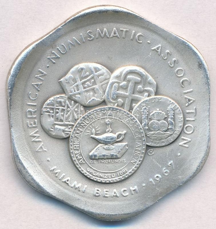 USA 1967. "American Numismatic Association - Miami Beach 1967 / 1967 Annual Convention - Fun in the Sun" Ag commemorative medallion hallmark and serial number "48" on the edge (32,23g) C:XF
