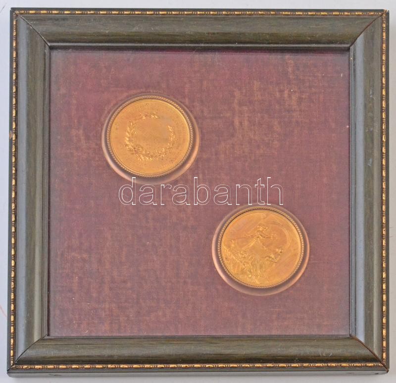 Német Birodalom / Strassburg 1900. "Für Verdienste bei der Allgemeinen Ausstellung für Kochkunst, Nahrungs- und Genussmittel, Volksernährung, Armeeverpflegung" aranyozott emlékérem (2x), üvegezett keretben T:1- German Empire / Strassburg 1900. "Für Verdienste bei der Allgemeinen Ausstellung für Kochkunst, Nahrungs- und Genussmittel, Volksernährung, Armeeverpflegung" gold plated commemorative medallions (2x), in glass frame C:AU