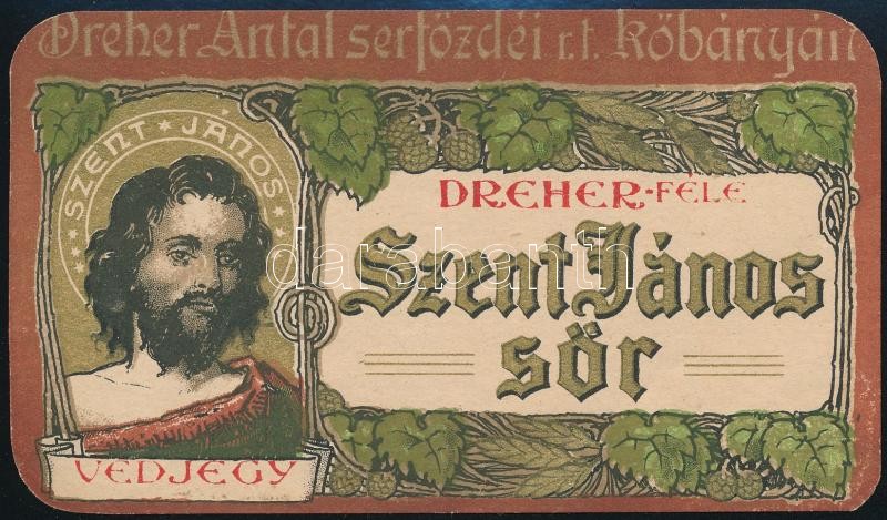 cca 1910 Dreher-féle Szent János sör, litho sörcímke, 8x14 cm