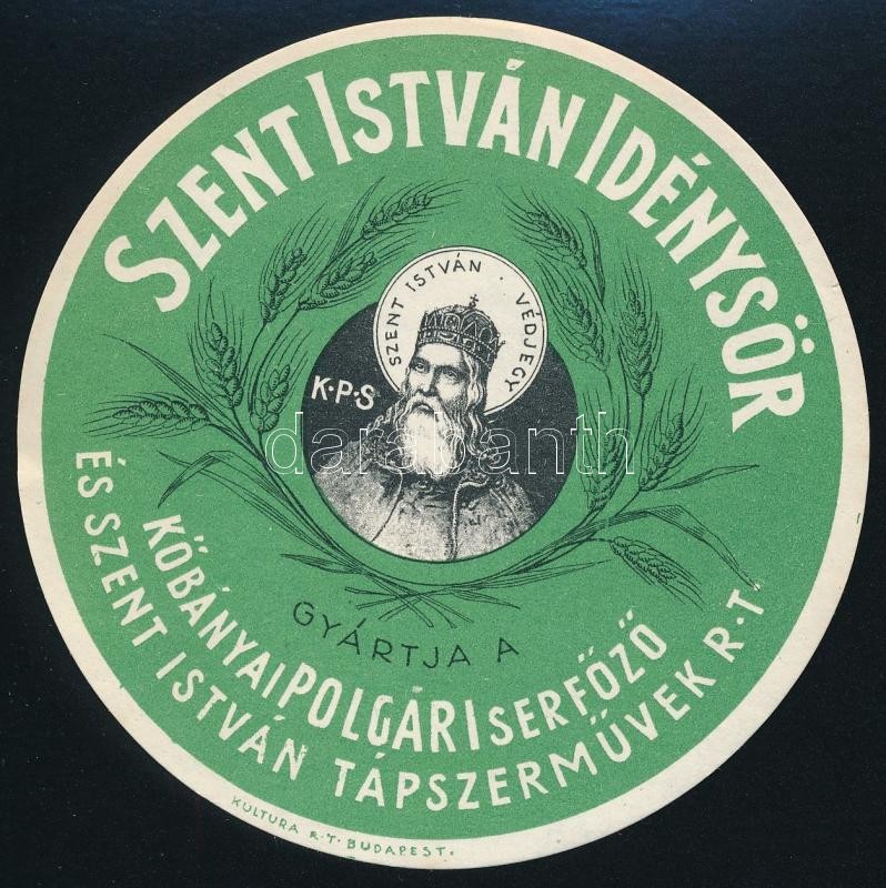 cca 1930 Szent István Idénysör italcímke, Kőbányai Polgári Serfőző és Szent István Tápszerművek Rt., Kultúra Rt.